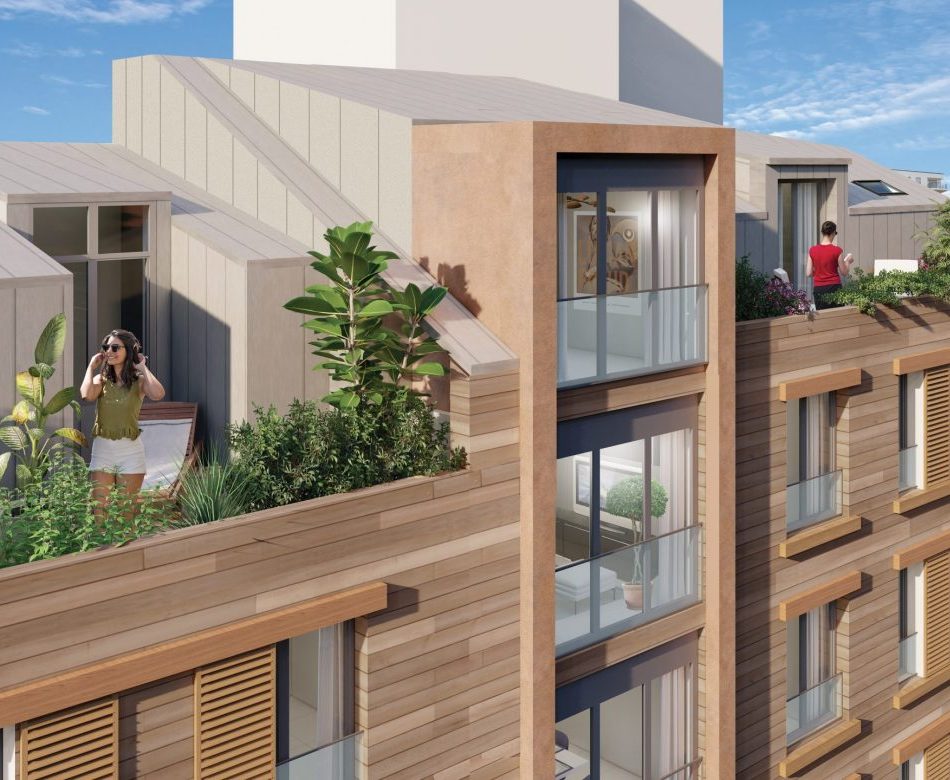 C ’est dans un quartier calme et branché de Paris et à seulement 100 mètres du Parc de Belleville, le programme immobilier neuf s’installe. Vous serez conquis par ce lieu animé, son esprit village et ses animations culturelles - rue Street Art - et sportives. Au pied de la résidence, vous profiterez d’une rue commerçante et d’un accès direct à de beaux espaces verts. Dans un cadre naturellement paisible, cet arrondissement dispose de toutes les commodités nécessaires à la vie au quotidien: commerces de bouche, crèches, écoles et lycées, parcs et transports en commun. Les stations de métro Couronnes et Ménilmontant sur la ligne 2 ainsi que plusieurs lignes de bus sont situées à proximité immédiate. Vous profiterez également du célèbre marché de Belleville réputé être l'un des plus grands et diversifié de la capitale. Proche de la nature et de la ville, ce quartier très prisé du 20ème arrondissement propose un cadre de vie confortable et agréable qui séduira les familles mais aussi les jeunes actifs. Une réalisation haut de gamme et parfaitement intégré à son environnement, présente une architecture contemporaine alliant matériaux issus de la filière écologique, confort et luminosité. Sur quatre étages, la façade marie élégamment le verre et le bois tout en intégrant de belles percées lumineuses. Afin d'être en osmose avec la verdure environnante, les terrasses ont reçu un traitement végétal. Les fenêtres en oriel accentuent la verticalité de chaque façade. La résidence dispose d'appartements du studio au 5 pièces offrant de belles pièces à vivre. Loggias et terrasses viennent apporter charme et luminosité à vos appartements. Au rez-de-chaussée, des commerces participent à l'animation du quartier facilitant le quotidien des habitants.