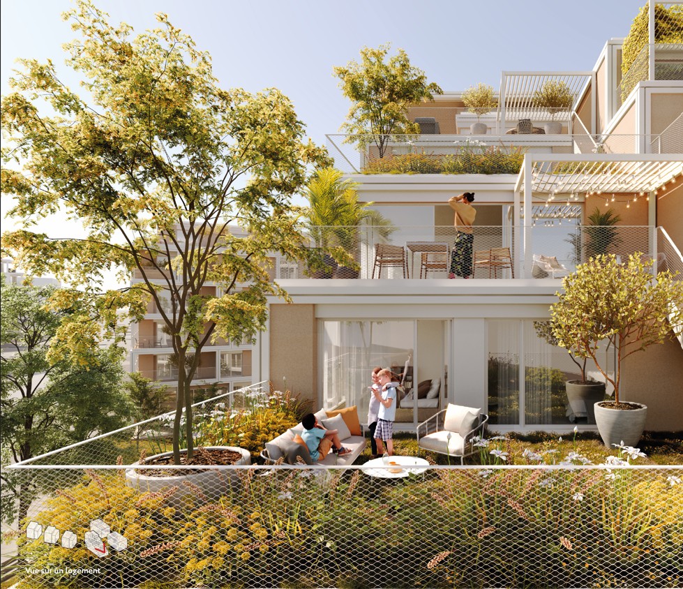 Avec son architecture unique en gradins, le programme immobilier neuf s’impose comme un repère moderne et élégant au cœur du quartier. Chaque étage s’ouvre sur des terrasses végétalisées, créant une véritable cascade de verdure qui prolonge la forêt de Sermenaz jusqu’au cœur de Rillieux-la-Pape. La transparence de ses façades vitrées apporte lumière et légèreté, tout en établissant un dialogue harmonieux avec la médiathèque voisine, l’Échappée. Du studio au 5 pièces duplex, les appartements sont conçus comme de véritables belvédères. Grâce à leurs terrasses en cascade et à leurs larges baies vitrées, chaque logement profite d’une continuité unique entre intérieur et extérieur. Les pièces se baignent de lumière et s’ouvrent généreusement sur le paysage environnant.