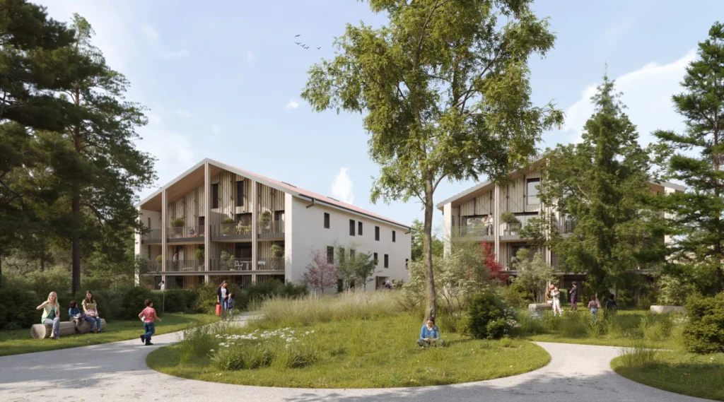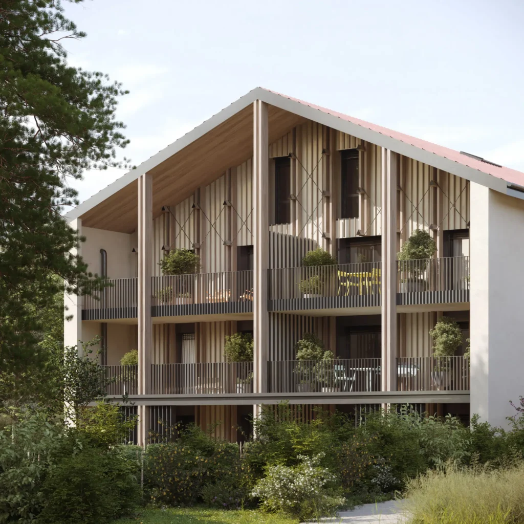 Le quartier Bourg incarne un art de vivre rare, fait de simplicité, de proximité et d’élégance discrète. Son ambiance de village, ses commerces de qualité, ses bâtisses préservées et sa vie locale en font un lieu vivant, recherché, profondément humain. Autour du programme immobilier neuf tout est à portée de pas : écoles, collège, lycée, commerces de bouche, marché, services médicaux, infrastructures sportives… La gare TER de Tassin-La-Demi-Lune relie le quartier à Lyon Saint-Paul en moins de 10 minutes, facilitant le quotidien sans compromis. Inspirée des corps de ferme traditionnels, l’architecture de la résidence en offre une lecture contemporaine et sensible, où la sobriété devient un langage en résonance avec l’esprit du lieu. Les appartements bénéficient de larges espaces extérieurs avec une vue sur un environnement végétal apaisant : une atmosphère propice à la quiétude et au ressourcement.