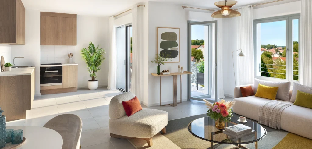 Ce nouveau programme immobilier invite à redécouvrir l’esprit de village dans un cadre contemporain. Ici, tout est réuni pour une véritable vie de quartier : écoles, commerces, marché, équipements sportifs, services publics et espaces verts sont accessibles en quelques minutes à pied, offrant un quotidien simple et pratique. Aux portes de Lyon, à Mions, le charme de la nature s’allie à la vitalité urbaine. Cette commune à taille humaine séduit par son équilibre : un environnement verdoyant, des infrastructures modernes et une convivialité préservée. Parfaitement connectée, la résidence bénéficie d’un emplacement stratégique : l’A46 et la gare TER de Saint-Priest assurent des déplacements rapides vers Lyon et l’ensemble de la métropole. Et pour les amateurs de nature, la proximité des Balmes viennoises offre de magnifiques échappées pour se ressourcer au grand air. Ce programme est pensé pour offrir à chacun un cadre de vie harmonieux, entre dynamisme citadin et douceur de la campagne.