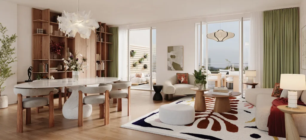 Le programme immobilier neuf a été pensé jusque dans les moindres détails, pour que chaque famille, chaque résident, y trouve ce qu’il y a de plus agréable, à l’image de Vincennes. Les plans ont été travaillés avec une grande attention pour qu’ils correspondent aux exigences les plus actuelles. Les intérieurs, nous les voulons chaleureux, confortables, pratiques. Ils seront en grande majorité prolongés de terrasse, loggia ou balcon complétant une vie intime des joies de l’air libre. Les prestations haut-de-gamme de la résidence se dévoilent peu à peu depuis l’accueillante porte d’entrée, jusqu’aux appartements, après avoir cheminé dans le hall décoré ainsi que dans chaque palier d’étage. Les pièces à vivre seront vêtues d’un parquet en bois ; plusieurs harmonies de revêtements en grès cérame et faïence assortie seront proposées au choix de chacun pour les pièces d’eau.