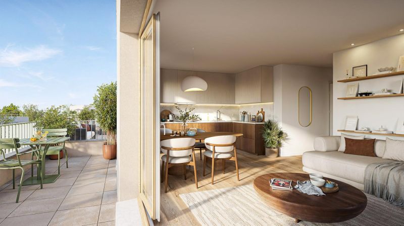 Face au bois du Morbras, cette nouvelle résidence bénéficie d’un emplacement privilégié, entre nature et cœur de ville. Conçue pour s’intégrer harmonieusement dans la pente naturelle du terrain, elle domine la petite vallée et offre à de nombreux logements des vues dégagées sur la cime des arbres — une véritable impression de vivre au milieu de la nature. Du studio au 5 pièces, chaque appartement dispose d’un espace extérieur — balcon, terrasse ou jardin privatif — pour profiter pleinement de la lumière et du cadre verdoyant. L’architecture allie esthétisme et performance environnementale : toitures végétalisées, matériaux durables et isolation soignée garantissent confort thermique et sérénité tout au long de l’année. Les menuiseries en bois ou en aluminium soulignent le caractère contemporain de la résidence. Pensée comme un lieu de vie convivial, elle propose des espaces partagés pour tous : aire de jeux en bois, clairière aménagée, potagers et jardins collectifs, placettes végétalisées… Un cadre propice aux échanges et au bien-être. La résidence profite d’une situation idéale à Sucy-en-Brie, à proximité immédiate du centre-ville, des commerces, des écoles et des transports. Accès sécurisés, parkings, prestations de qualité : tout a été conçu pour offrir confort, tranquillité et qualité de vie au quotidien.